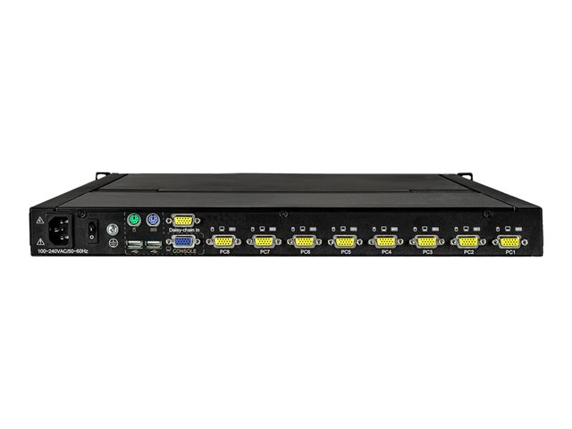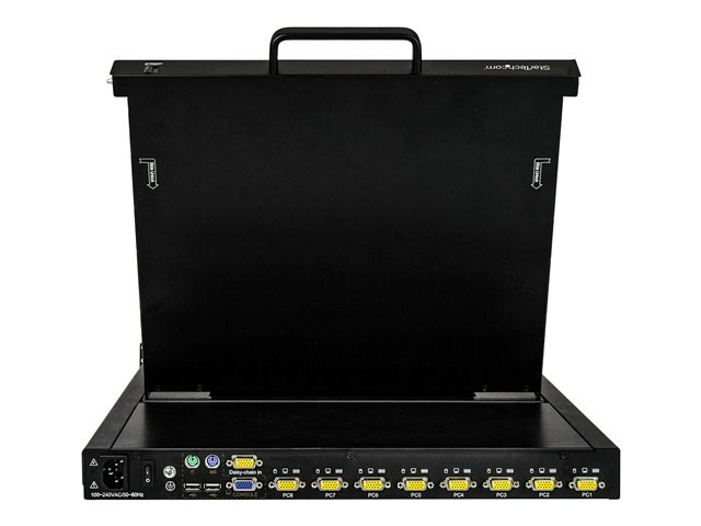 StarTech.com 8-ports rackmonterad KVM-konsol med 1,8 m kablar - Integrerad KVM-switch med 17-tums LCD-skärm - 1U LCD KVM-låda - OSD KVM - Hållbar 50 000 MTBF - USB + VGA-support - KVM-konsol med omkopplare för tangentbord/video/mus - 8 portar - USB - 17" - kan monteras i rack - 1280 x 1024 @ 60 Hz - 250 cd/m² - 1000:1 - 5 ms - VGA - svart - 1U