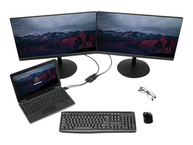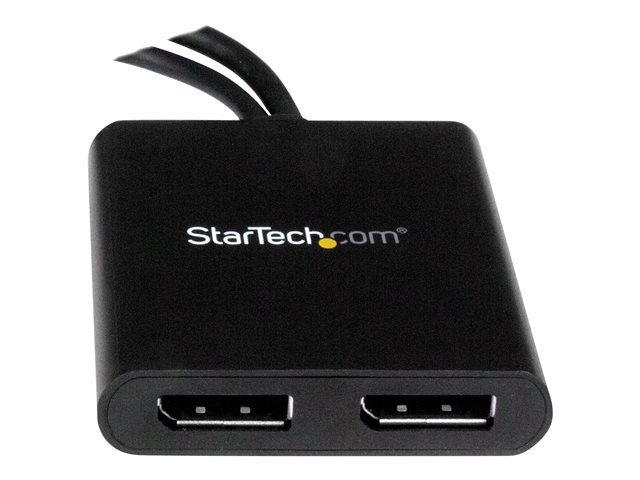 Med denna MST-hubb kan du ansluta två DisplayPort-skärmar till din Mini DisplayPort-dator. MST fungerar på alla Windows -enheter som stöder DisplayPort 1.2, som till exempel modeller av Lenovo Think Pad och Microsoft Surface . Vid anslutning till tidigare versioner av DisplayPort, som till exempel DP 1.1, fungerar MST-hubben som en videosplitter. MST-hubben är USB-driven så att det enda du behöver för att använda hubben är din dator.