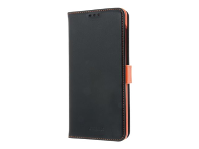 Insmat - Vikbart fodral för mobiltelefon - genuint läder, termoplastisk polyuretan (TPU), polyuretanklädsel - svart, orange, galvaniserad bronsring - för Samsung Galaxy A12 650-2971
