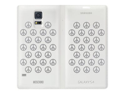 Samsung Flip Wallet EF-WG900R - Moschino Edition - vikbart fodral för mobiltelefon - vit/silver - för Galaxy S5, S5 Neo