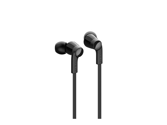 Belkin ROCKSTAR - Hörlurar med mikrofon - inuti örat - kabelansluten - Lightning - ljudisolerande - svart - för Apple 10.5-inch iPad Pro; iPad mini 4; iPhone 7, 7 Plus, 8, 8 Plus, X, XR, XS, XS Max G3H0001BTBLK