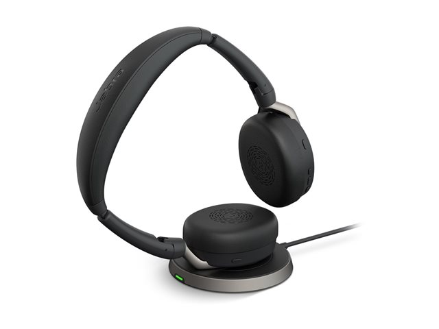 Jabra Evolve2 65 Flex UC Stereo - Headset - på örat - Bluetooth - trådlös - aktiv brusradering - USB-C - svart - med trådlös laddningsplatta - Optimerad för UC