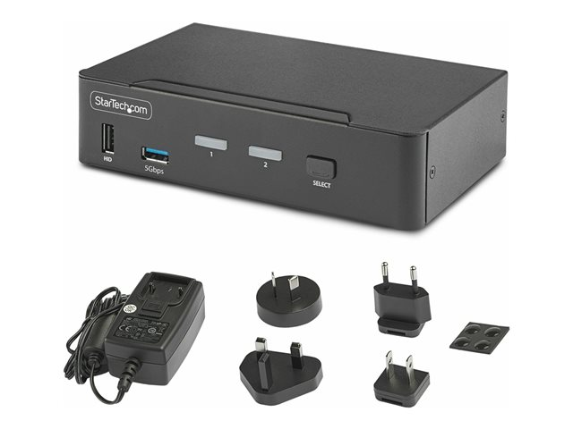 StarTech.com 2-Port DisplayPort KVM Switch, 8K 60Hz / 4K 144Hz, Single Display, DP 1.4, 2x USB 3.0 Ports, 4x USB 2.0 HID Ports, Push-Button & Hotkey Switching, TAA Compliant - OS Independent, Metal Housing (D86A2-2-PORT-8K-KVM) - Omkopplare för tangentbord/video/mus/ljud/USB - 2 x KVM/ljud/USB - 1 lokal användare - skrivbordsmodell - TAA-kompatibel